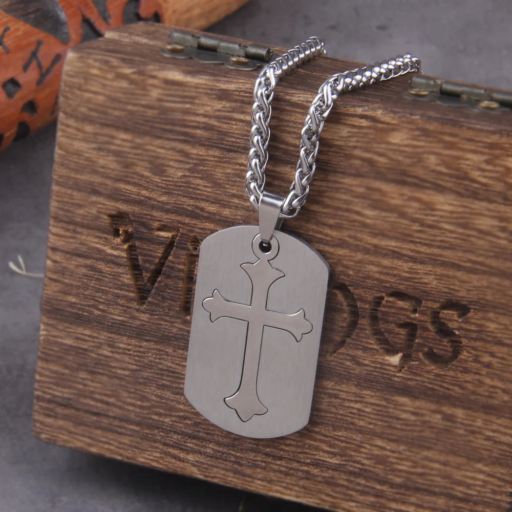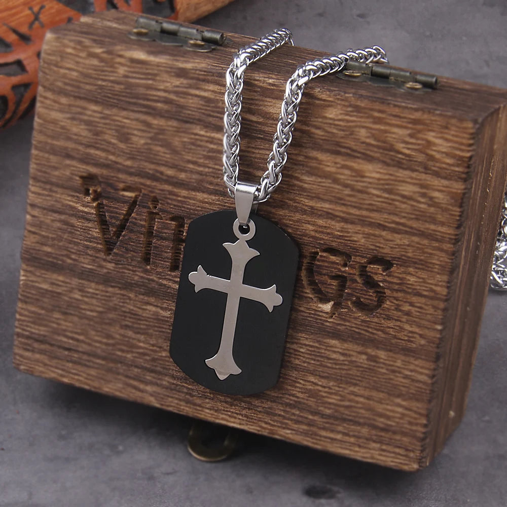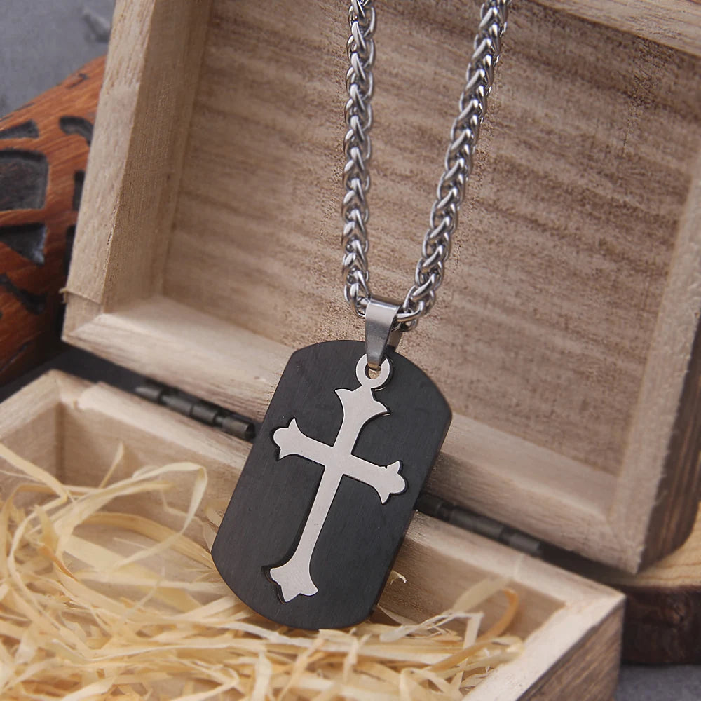 Colar Placa Cruz- Aço inoxidável