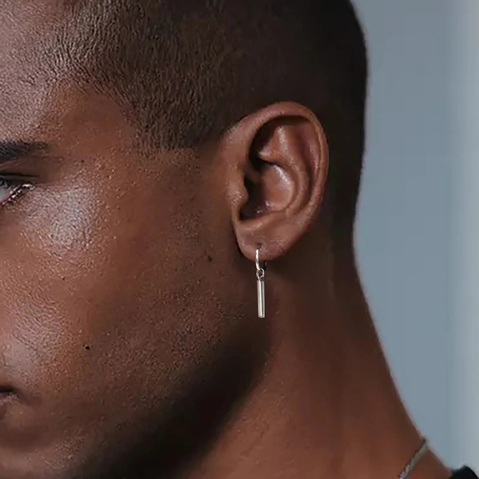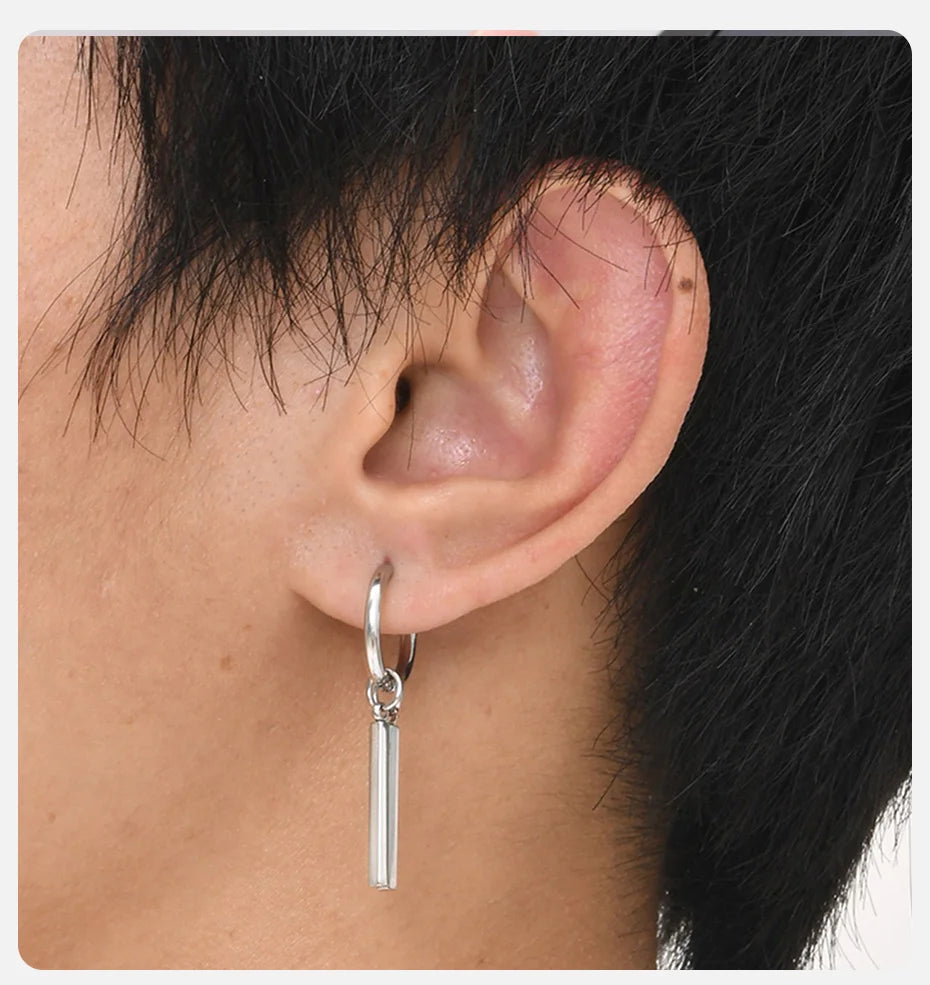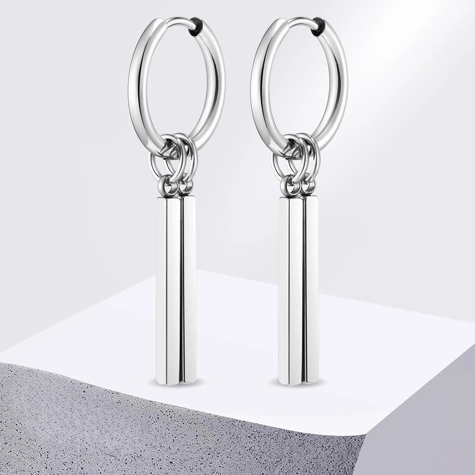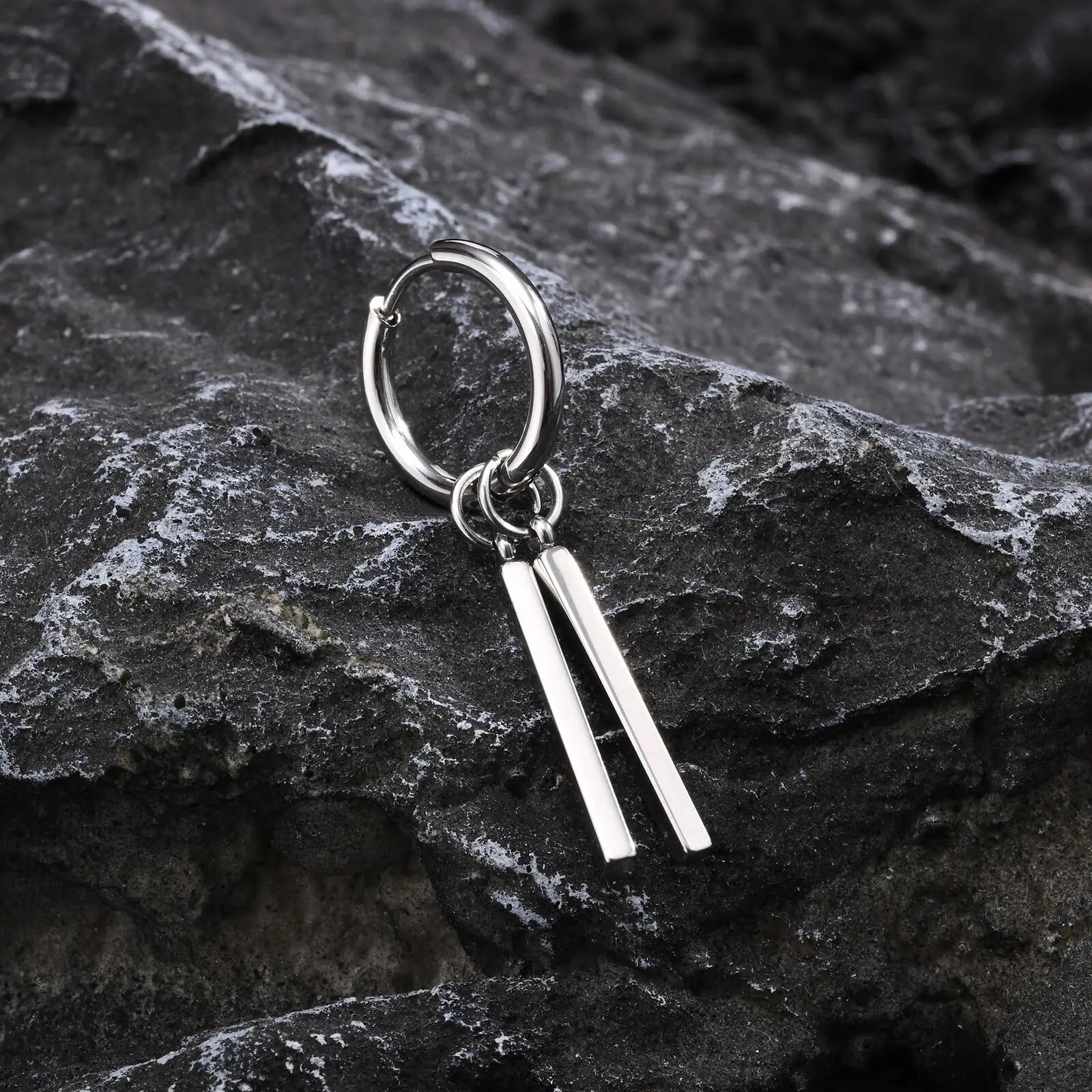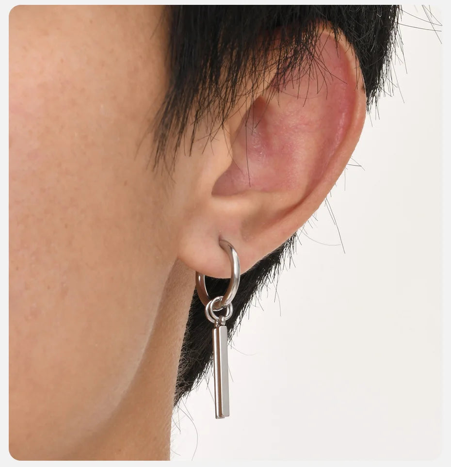 Feito em aço inoxidável premium, esse brinco tipo dangle hoop é à prova d'água, leve e resistente. O design geométrico simples adiciona um toque moderno.