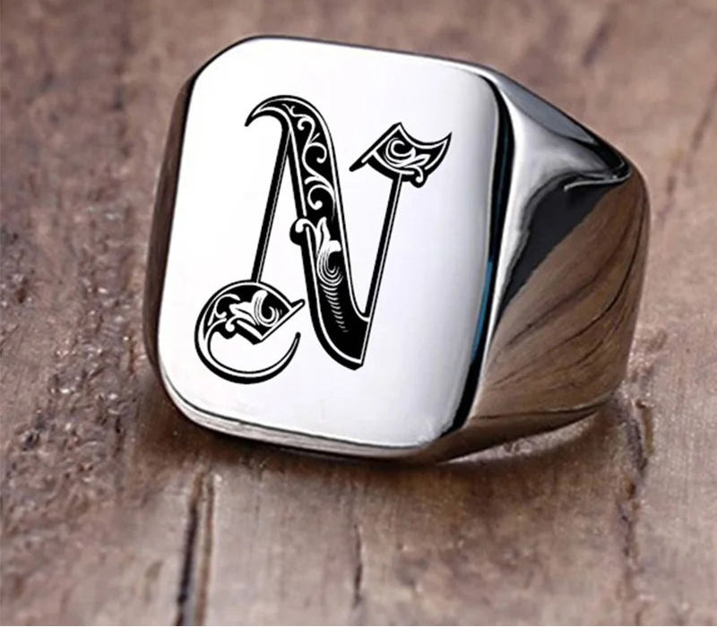 Anel cheio de estilo e personalidade com letra inicial gravada.