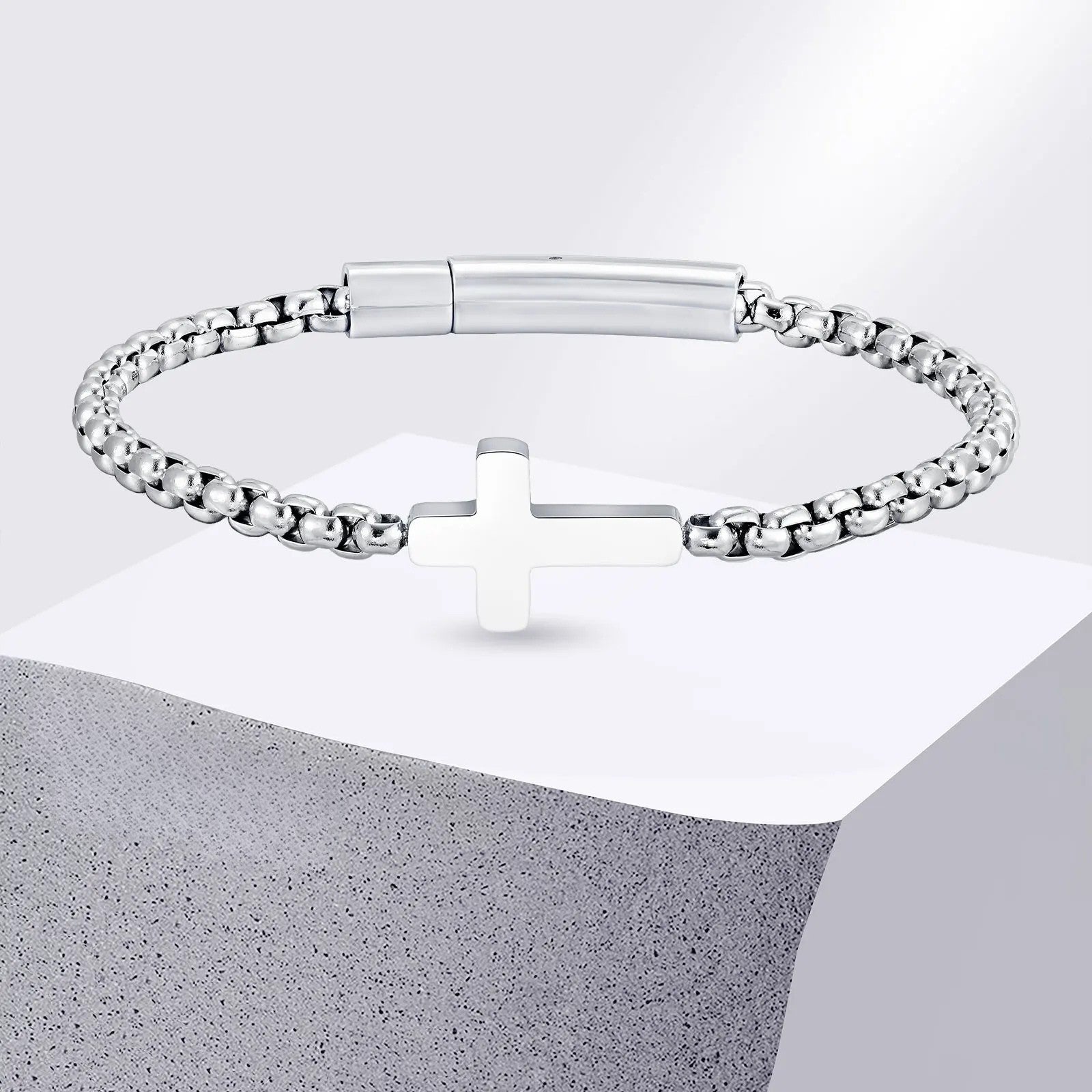 Pulseira Corrente Cruz é a combinação ideal de estilo e personalidade. Seu design traz uma corrente box arredondada com detalhe de cruz central, simbolizando fé e proteção em um acessório moderno e sofisticado.
